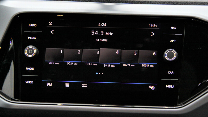 En cuanto a recursos a bordo, el T-Cross tiene un buen repertorio, al incluir desde la versión básica (Trendline MT): barras de techo funcionales, sistema antiaprisionamiento en todos los vidrios, luces antiniebla delanteras con luz de giro, luces de marcha diurna y traseras de tipo LED, sensor de luz, protectores de bajo laterales, retrovisores eléctricos (el derecho con función tilt down), piso del baúl ajustable en altura, sensores de parqueo y cámara de reversa, entre otros.