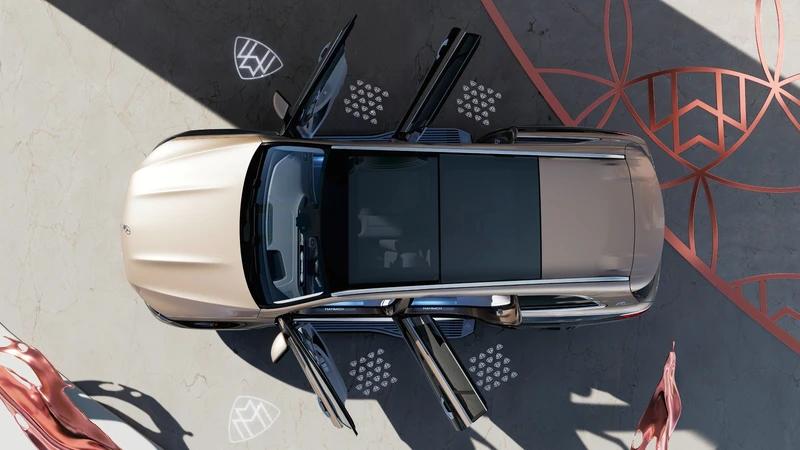El refinamiento se evidencia hasta en los exclusivos cromados que protegen los bajos de este enorme SUV. Otro elemento representativo es el acabado bicolor de la carrocería, con ocho posibles combinaciones cromáticas; en todas ellas la estrella de la marca se iza en el frontal, mientras que el emblema de Maybach decora el paral posterior. Como parte del equipamiento exterior, también se cuenta con: