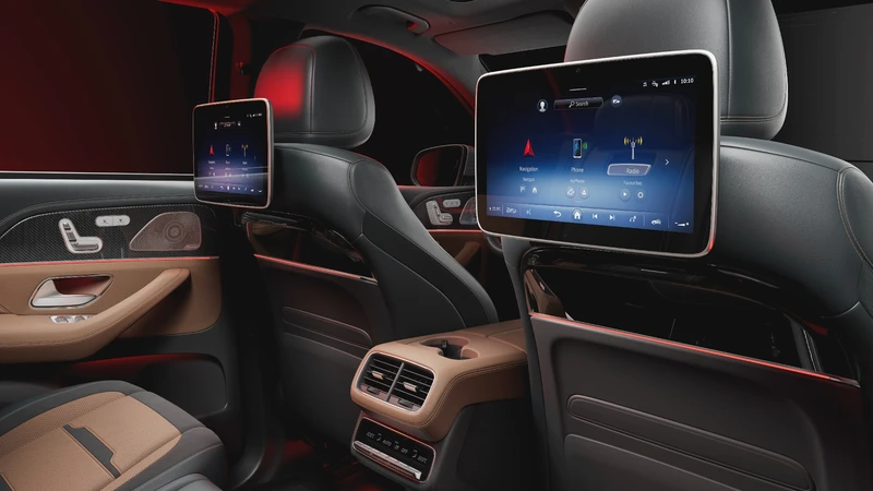 Puertas adentro, la nueva Maybach GLS 600 es coherente con su idea de lucir con una exclusiva limusina todoterreno. Para nuestro mercado está disponible como base el tapizado en napa negra, pero en los mercados orientales, foco de interés para la marca, también se ofrece con coberturas blancas, que resaltan el amplio espacio disponible a bordo para los pasajeros y en donde son más evidentes los múltiples puntos de iluminación ambiental de 64 colores que decoran y personalizan el ambiente.