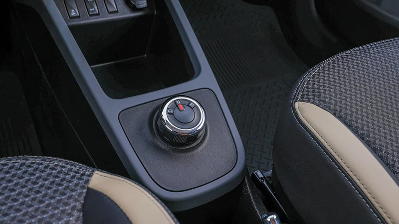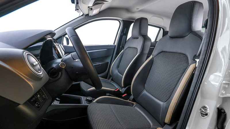 Con respecto al interior, al igual que su hermano de gasolina, brinda espacio adecuado hasta para cuatro ocupantes, quienes a bordo se favorecen de recursos como asiento trasero abatible, tablero interior bitono, cuadro de instrumentos digital, volante con mandos para el limitador de velocidad, sistema multimedia Media Evolution (con pantalla táctil de 7″) y botón push-to-talk, que activa el comando para el reconocimiento de voz (a través del celular), lo que finalmente permite controlar el asistente iOS o Google del teléfono inteligente.