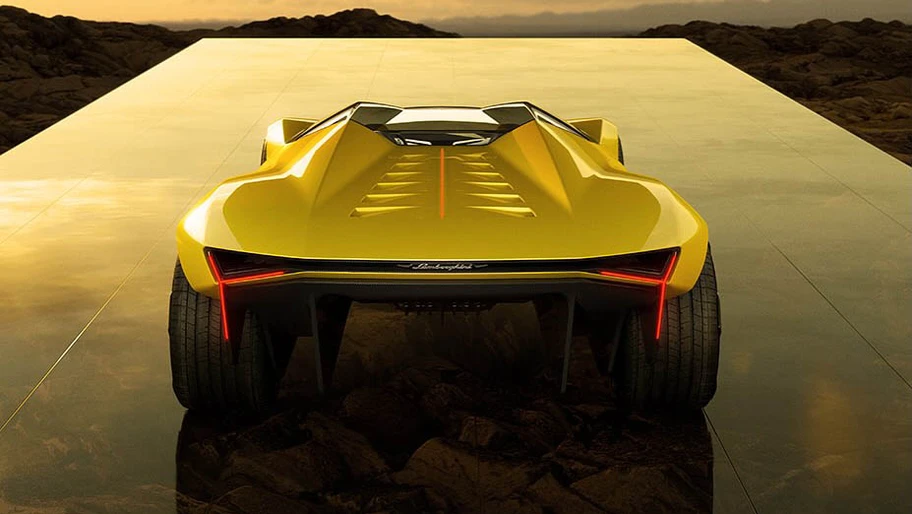 La parte más radical es la cúpula del habitáculo, cuyas nervaduras se transforman en extensiones protuberantes del modelo. De esta forma, la hendidura central de la cúpula puede conectarse visualmente con la tapa del motor, evocando las formas de modelos como el Countach o el Diablo. Incluso la zaga retoma esos modelos: con mínima extensión visible, deja al descubierto un gran difusor y el ancho de sus ruedas.