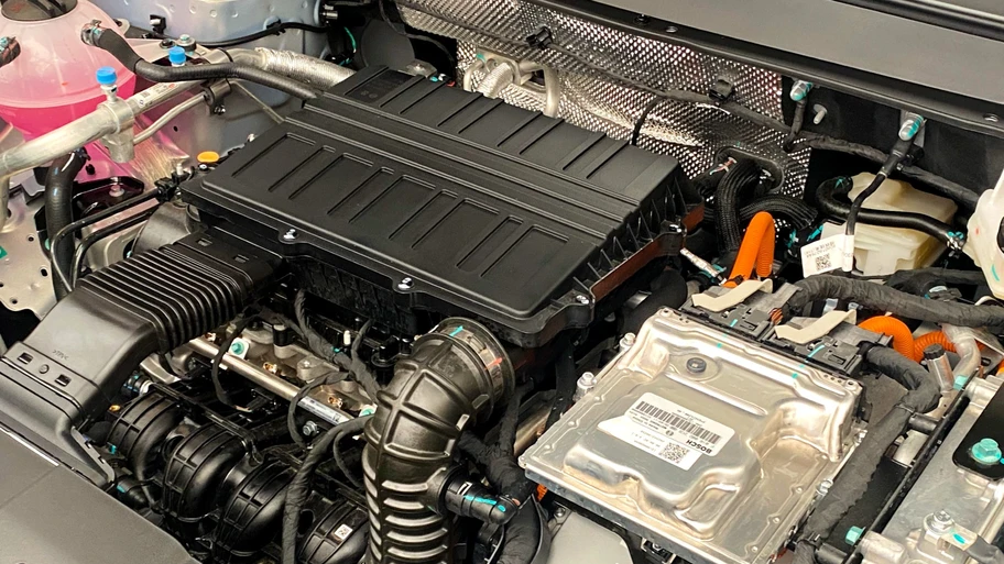 La gestión del sistema está a cargo de una transmisión híbrida dedicada (DHT) y se alimenta de una batería de 350V, que tiene una capacidad de 1,83 kWh.