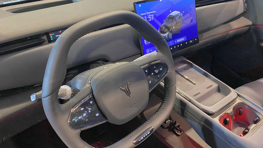 La cabina es uno de los puntos donde la marca busca diferenciarse claramente. Según la ficha técnica, el Courage incorpora un panel de instrumentos digital de 6”, un monitor OLED curvo de 15” con control gestual y oral, así como un avanzado HUD con proyección en realidad aumentada. Todo el ecosistema tecnológico se gestiona a través de un procesador Snapdragon 8295 de última generación y un sistema operativo compatible con CarPlay, actualizaciones OTA, Bluetooth y control inteligente por voz, tanto en las plazas delanteras como las traseras.