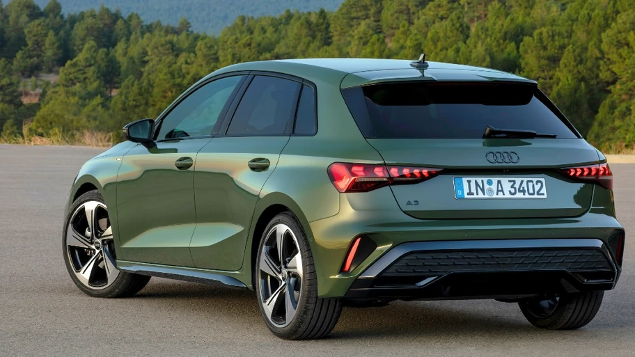 En estética, la versión Dynamic se diferencia por un diseño exterior más sobrio, faros LED y rines de 18 pulgadas con diseño de cinco radios en “Y”, decorados en gris grafito. Las variantes S Line, tanto Sedán como Sportback, incorporan elementos deportivos propios del paquete S Line: parachoques específicos, alerón (en Sportback), molduras exclusivas, faros LED o Matrix LED con intermitentes dinámicos, además de grupos ópticos traseros LED con firma lumínica animada. Todas las versiones disponen de apertura eléctrica de baúl y espejos con ajuste eléctrico y calefacción.