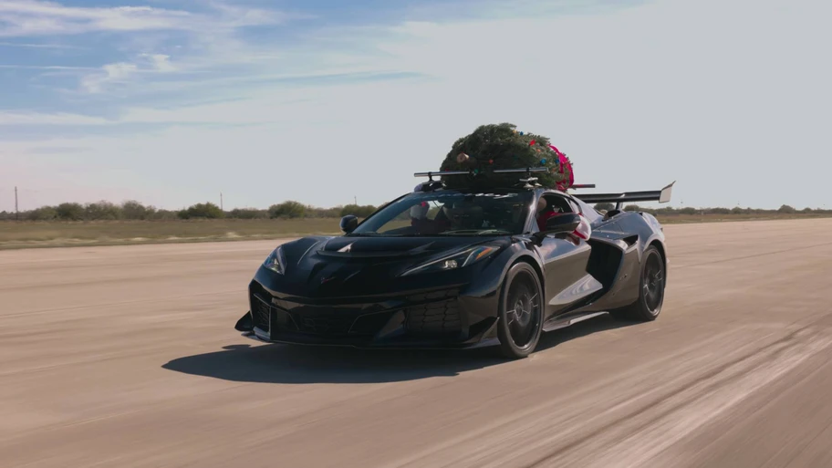 El especialista texano en modificaciones de alto desempeño, Hennessey, se puso muy a tono con la temporada e impuso un peculiar récord: “circular a la velocidad más alta con un árbol de Navidad atado al techo”.