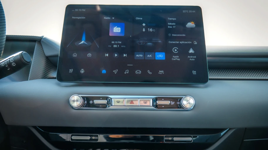Por su parte, el sistema de frenado regenerativo ofrece cuatro niveles de funcionamiento —bajo, medio, fuerte y adaptativo—, mientras que el vehículo cuenta con cinco modos de conducción: Normal, Sport, Comfort, Nieve y Personalizado.