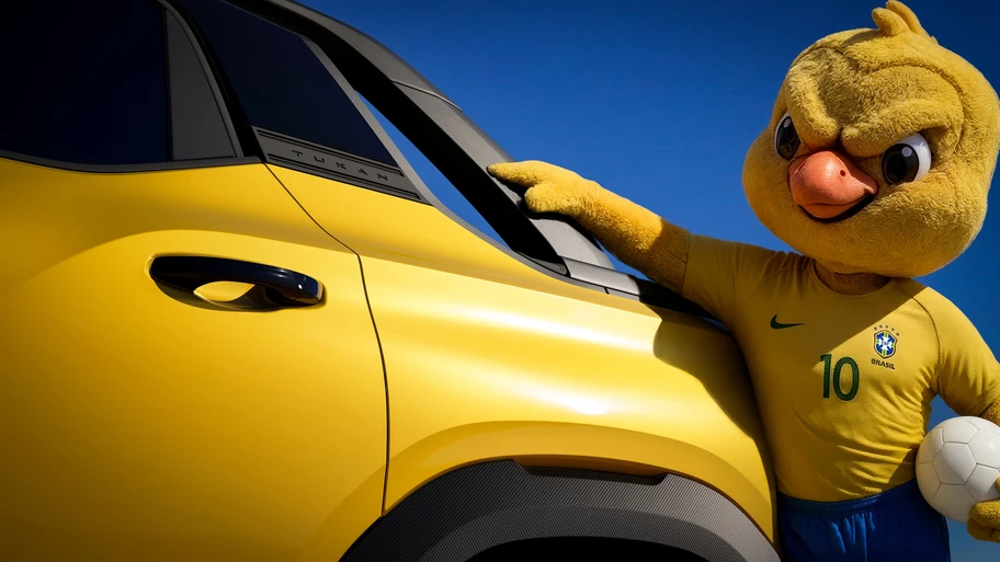 La Volkswagen Tukan y el Canarinho, la mascota de la Selección de Brasil.