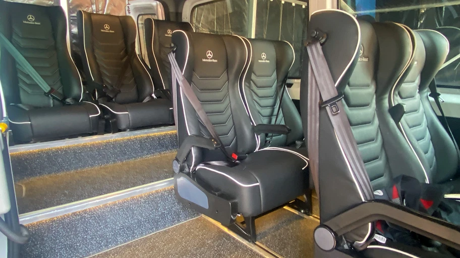 Como parte del equipamiento, la Sprinter 411 dispone, entre otros elementos, de aire acondicionado independiente para cabina y pasajeros, volante multifunción, control crucero, sensor de lluvia, sistema de encendido sin llave y configuración de asientos 2+2+2+3, que favorece la circulación en el pasillo y reserva cerca de 80 cm de espacio entre las filas de asientos.